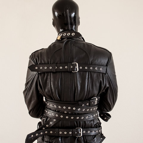 My girlfriend grabbed the camera and shot a small photoset from me wearing my 3mm smoothskin neoprene suite, a latex hood, latex toe socks and my beloved McHurt straitjacket.